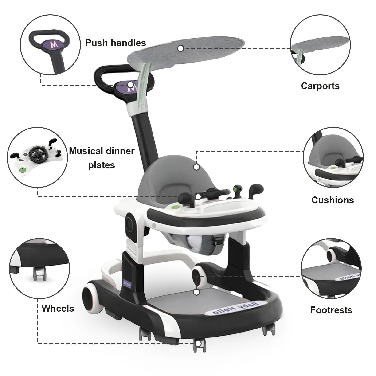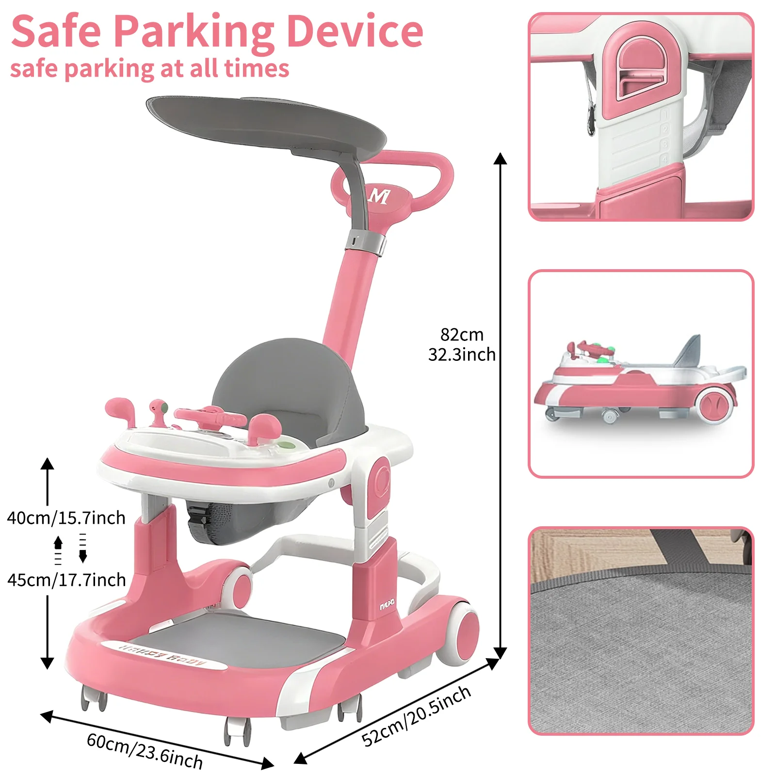 The Multifunctional Baby Walker with Sunshade and Seat is an all-in-one walking and play solution designed to support your baby’s early development with comfort, safety, and fun. Featuring a stable anti-rollover design, adjustable height settings, a comfortable seat, and built-in music toys, this walker helps babies learn to walk while staying entertained. The added sunshade canopy makes it suitable for both indoor and light outdoor use, offering parents a practical and versatile baby supply.
