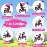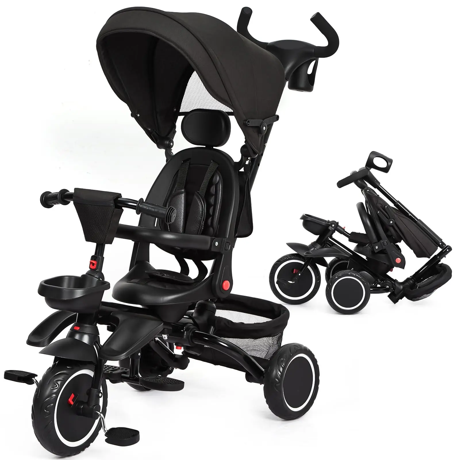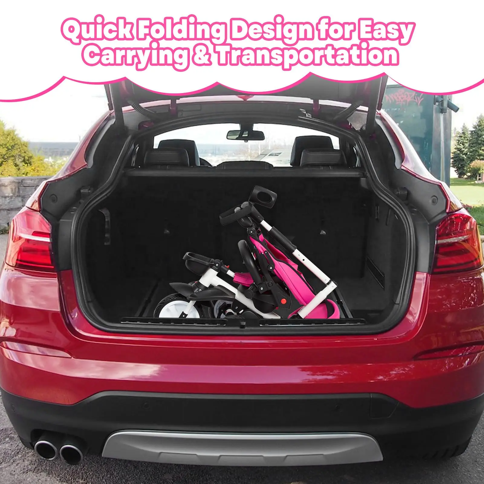 A compact, foldable tricycle for toddlers featuring an adjustable safety harness for secure riding, easy folding for storage or travel, and a sturdy frame designed for comfortable, stable fun on the go. Perfect for little ones learning to pedal and explore! 🚲✨