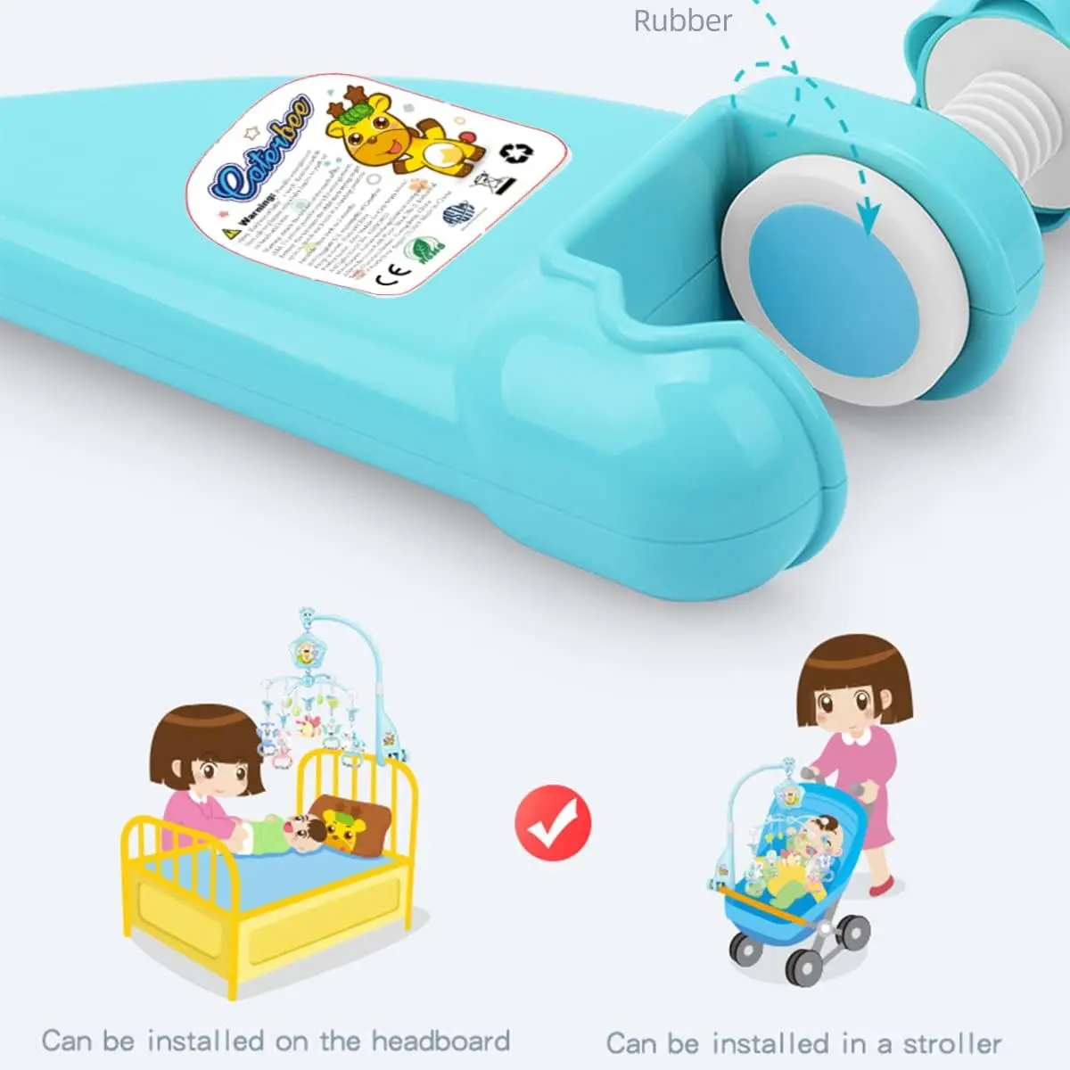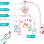 A soothing musical crib mobile featuring gentle lights, calming melodies, and a dreamy ceiling projection to help lull your baby to sleep. With convenient remote-control operation, it allows parents to easily adjust sounds, lights, and motion without disturbing their little one.