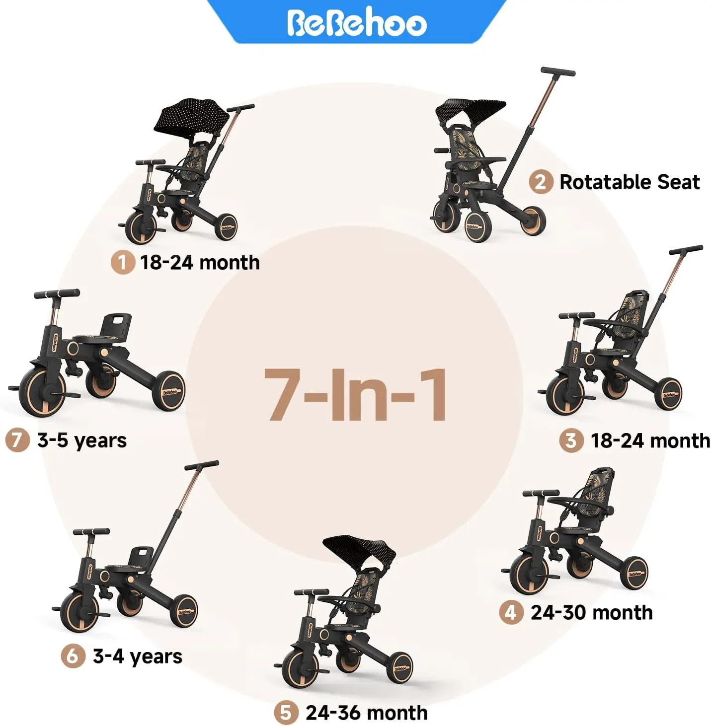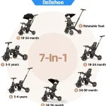 1. 1.7-IN-1 Tricycle Stroller for Toddlers – This tricycle stroller serves as a tricycle, stroller, and push bike for toddlers, offering flexibility to adapt to different needs and stages of your child’s development.
